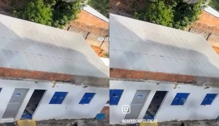 Imagens que circulam nas redes sociais mostram o momento em que a mulher atinge uma janela do prédio com uma pedra. Ela estava acompanhada de outra pessoa durante a ação.
