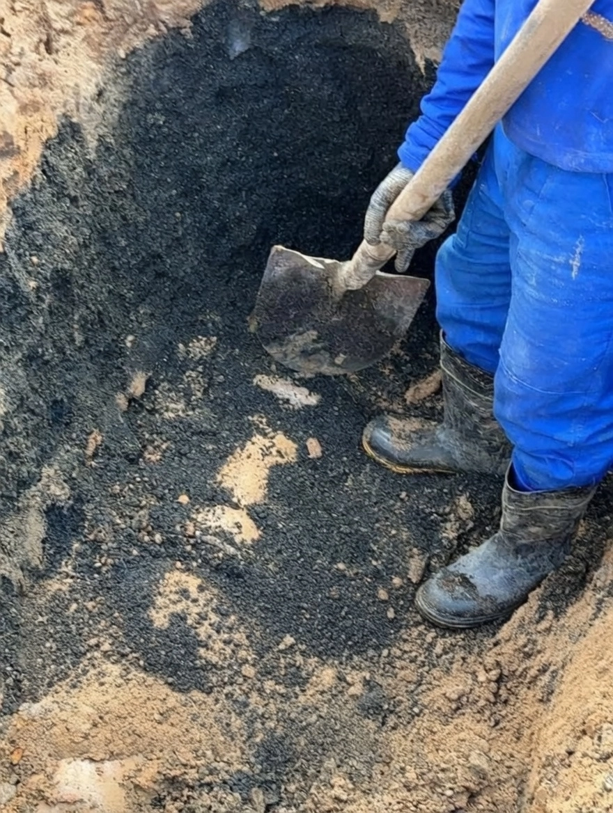 Imagens e relatos mostram material escuro sendo revolvido durante as escavações, o que levanta preocupação quanto à possibilidade de reexposição de substâncias tóxicas presentes no solo da cidade.